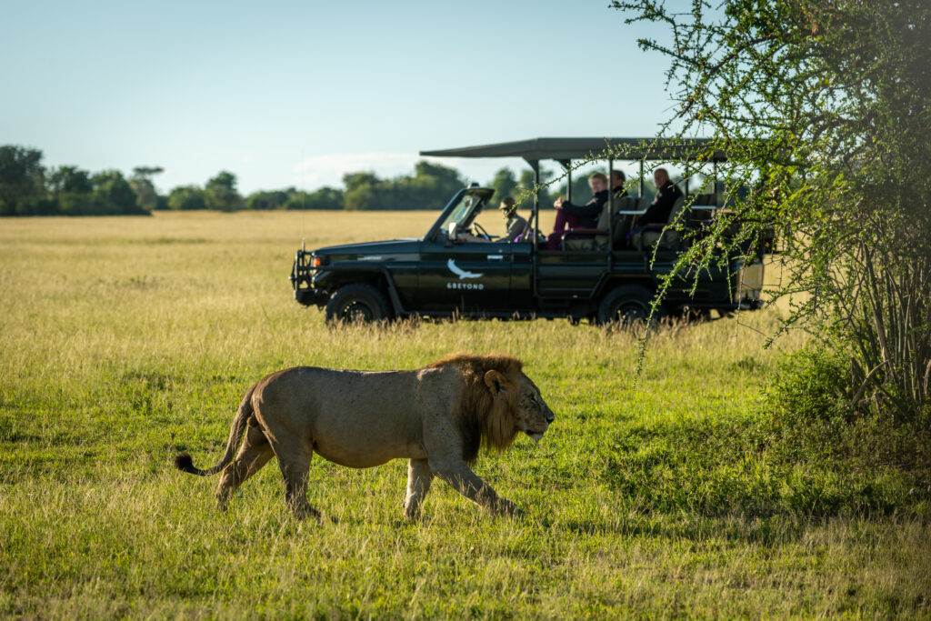 南アフリカで、狩りに出かけた観光客が乗っていたSUV(スポーツ用多目的車)と、綱引きをしている雄ライオンを発見しました。 同行したガイドも、長年のキャリアでこんな不思議な光景は見たことがないと言います。