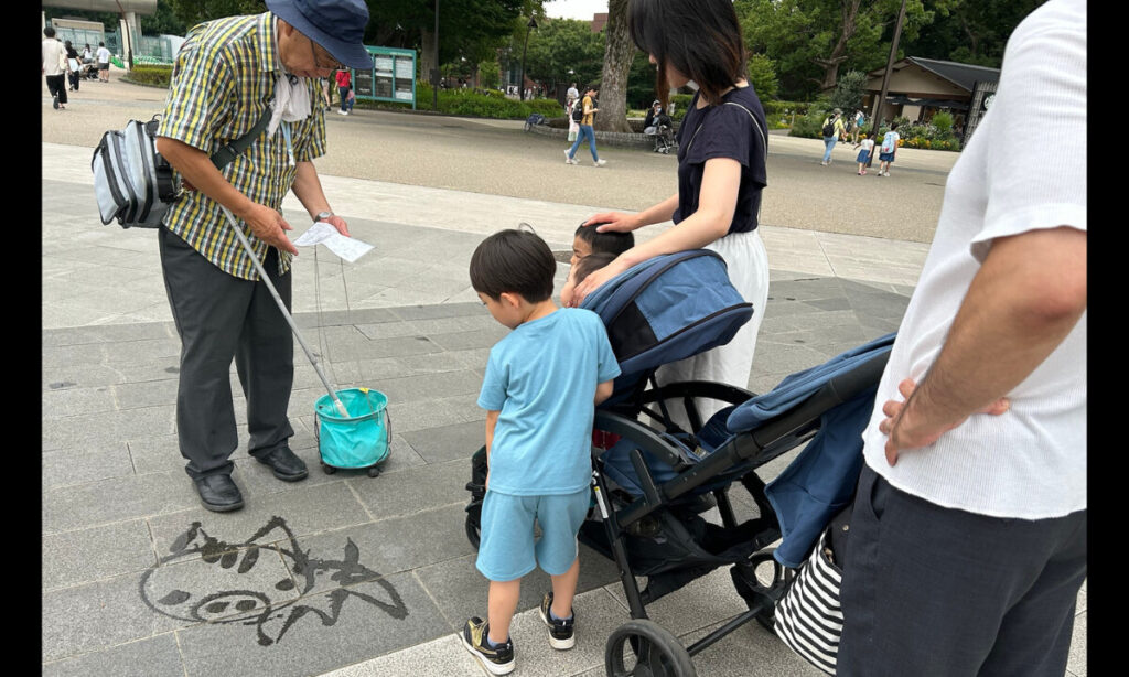 【動画あり】「上野公園」で出没 水で絵を描く「謎のおじさん」
