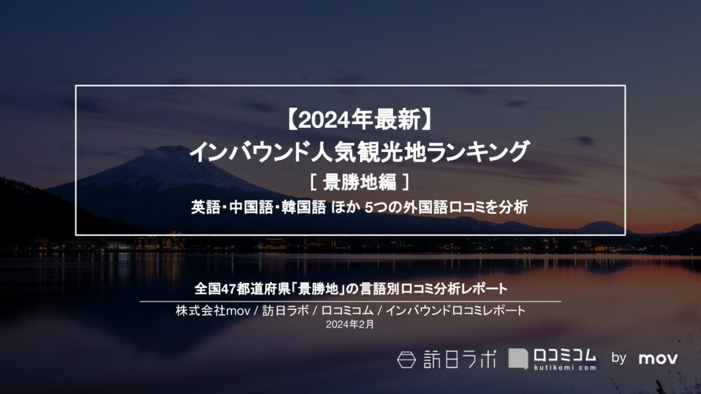 国内最大級のインバウンド総合メディア「訪日ラボ」及び 口コミサイトを”もっと”売上に変える店舗支援SaaS「口コミコム」を運営する株式会社movは、全国の観光スポットに寄せられた最新の口コミデータから、独自の『インバウンド人気観光地ランキング』を発表しました。