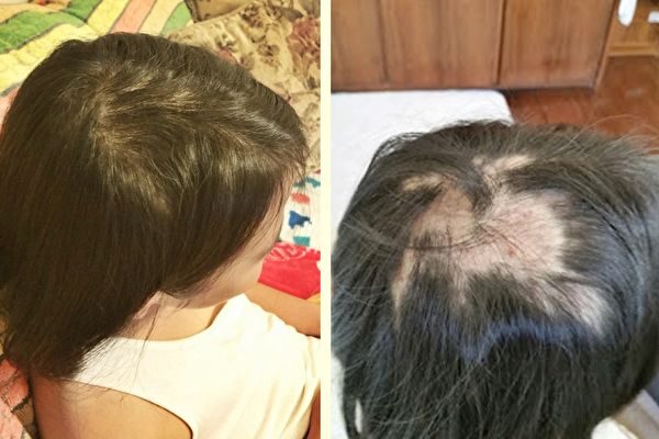 2年前のことです。当時10歳だった私の娘が「奇病」に罹ったのか、突然、頭頂部の髪が抜けて、大きく脱毛してしまいました。5人の医師に診てもらいましたが、原因は全く分かりません。脱毛部分がどんどん広がっていくのを見て、私も夫も、とても焦っていました。(本記事の女児の写真は、保護者である筆者から提供されたもので、公開する許可を得ています)