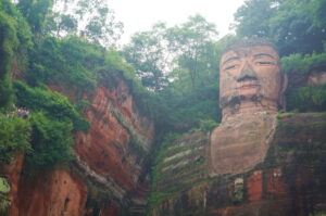 楽山大仏は四川省楽山市岷江東岸にあり、大渡河、青衣江という三つの大きな川の合流点に位置します。仏像は唐玄宗開元元年(713年)に彫り始め、90年余りの時間をかけて、唐徳宗貞元十九年(803年)に完成しました。