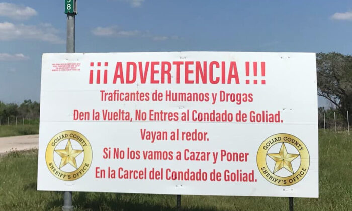 米国国境から200マイル北に位置するテキサス州ゴリアド郡のロイ・ボイド保安官は、スペイン語で書かれた警告標識を郡の境界に設置しました。