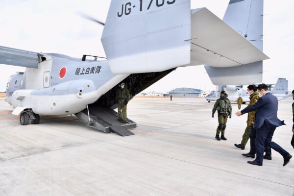 岸防衛相は29日、千葉県の陸上自衛隊・木更津駐屯地を視察、現職の防衛大臣として初めて自衛隊の保有するV-22オスプレイに搭乗し、「高度に安定した飛行」だったと評価した。