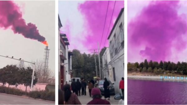 今月14日、河南省駐馬店市にある肥料工場から突然、大量の「紫色の煙」が放出された。地元民は、健康被害を懸念している。