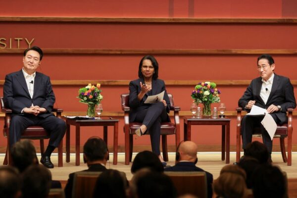 韓国の尹錫悦大統領と日本の岸田文雄首相は17日、米スタンフォード大で開かれた先端科学技術に関するラウンドテーブル(討論会)に出席し、クリーンエネルギーの供給網整備や、量子コンピューティングなどの革新技術での協力深化を表明した。