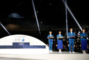 東京オリンピック・パラリンピックまで50日となった6月3日、大会組織委員会は表彰式で使用される表彰台や音楽、メダルを運ぶボランティアの衣装などを発表した。
