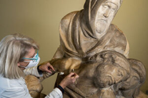 ミケランジェロの弟子であり同郷であり、そして友人でもあるジョルジョ・ヴァザーリ(1511年-1574年)は、自らの著作『芸術家列伝』の中で、神がこの芸術家に道徳と智慧と才能を授け、そのため、ミケランジェロは生活においても創作においても人々から賞され、崇拝されていると褒め称えました。