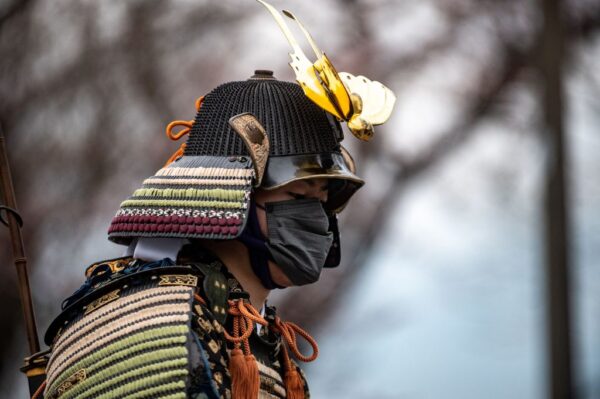 25日、甲冑を身にまとった「相馬野馬追」の勇ましい騎馬武者たちが、南相馬市の雲雀ケ原祭場地で東京五輪の聖火ランナー室屋義秀さんを出迎えた。「相馬野馬追」は国指定重要無形民俗文化財であり、福島県相馬地方の伝統行事だ。