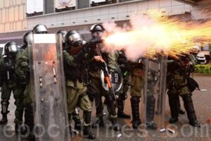 香港・新界の荃湾(チュンワン)区では25日、「逃亡犯条例」改正案を抗議するデモが行われた。強制排除に乗り出した警察はデモ隊に対して複数回催涙弾を発射したほか、拳銃を抜き発砲して威嚇した。当局は高圧放水車と装甲車も導入した。