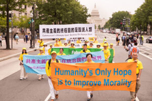 世界各国から米国ワシントンDCに集まった法輪功愛好者1万人余りは20日、ホワイトハウス周辺で盛大なパレードを行った。愛好者らは、「世界が真・善・忍を必要としている」「法輪功への迫害を停止せよ」「共産主義の最終的目的は人類の滅亡だ」「道徳の回帰こそ、人類にとって唯一の希望だ」などの横断幕を掲げて進行した。進行中、米政府の職員や関係者は理解と支持を示した。
