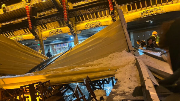 2月3日夜9時過ぎ、湖南省張家界市にある観光スポット「七十二奇楼」にある茶館で、仮設の屋根が崩落する事故が起きた。
