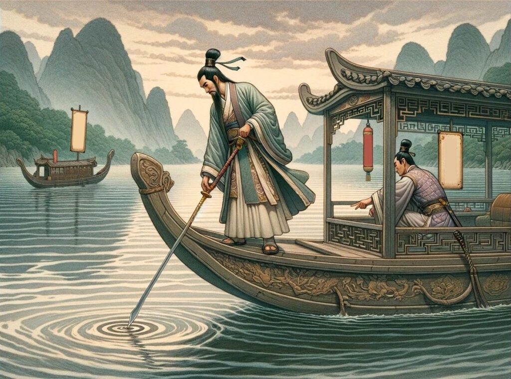 刻舟求剣(舟に刻んで剣を求む)という物語は、『呂氏春秋』に出てくる寓話ですが、その内容は、以下のようなものです。
