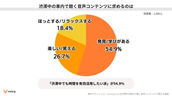 ゴールデンウィークに合わせて「渋滞中の車内で聴くのにおすすめな音声コンテンツ」に関するアンケートを実施。回答はラジオ番組やPodcast番組、Voicyなど音声メディアのチャンネルと幅広く集まりました。