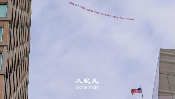 習近平訪米に合わせ サンフランシスコの空に「打倒 中共」の巨大スローガンが舞う