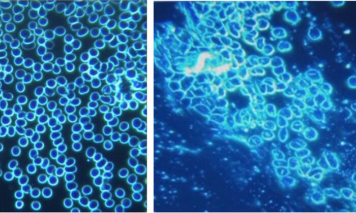 「ワクチンの成分がグラフェン、アルミニウム、結晶性アミロイド、崩壊したフィブリン(繊維素)、高電荷のナノテク粒子、あるいは他の何かであろうと、このスライドで示された血液中の破壊は、壊滅的で反論の余地はない」とテンペニー氏はエポックタイムズに語った。