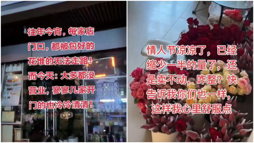 「例年のバレンタインデーであれば、どこの花屋でも花束を山積みにしていたが、今年は変だ。閉まっている花屋も多く、営業していてもお客さんはいない」など、市民が撮影したバレンタイン当日の動画も多くネットに投稿されており、コメント欄には「花なんか買うお金ない」の声が寄せられている。